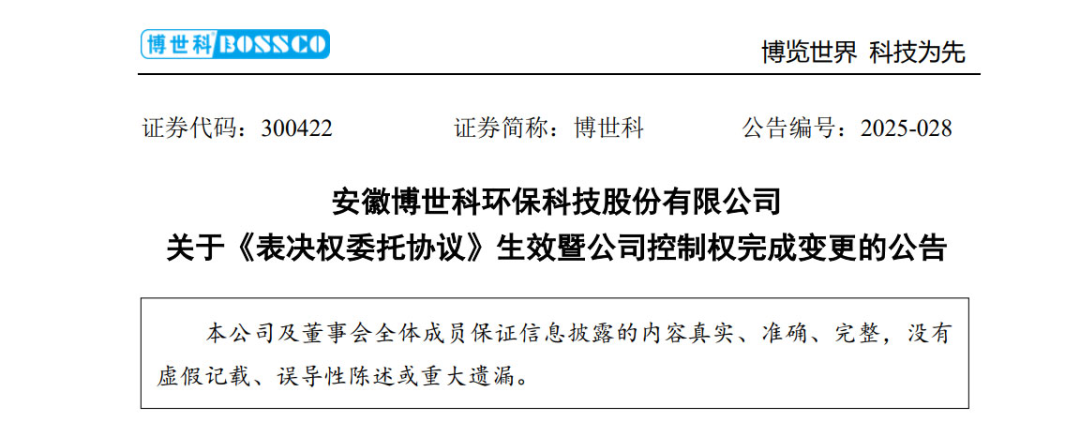 2月28日,博世科发布公告称,宁国市国资委已原则同意宁国国控通过表决权委托等方式转让博世科控制权,国家市场监督管理总局也决定对南化集团通过合同取得博世科的控制权案不实施进一步审查。