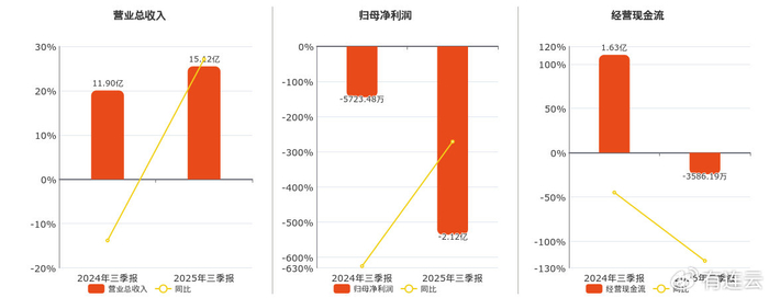 公司营业总收入为15.12亿元,较去年同报告期营业总收入增加3.22亿元,同比较去年同期上涨27.10%。归母净利润为-2.12亿元,较去年同报告期归母净利润减少1.55亿元。经营活动现金净流入为-3586.19万元,较去年同报告期经营活动现金净流入减少1.99亿元,同比较去年同期下降122.00%。