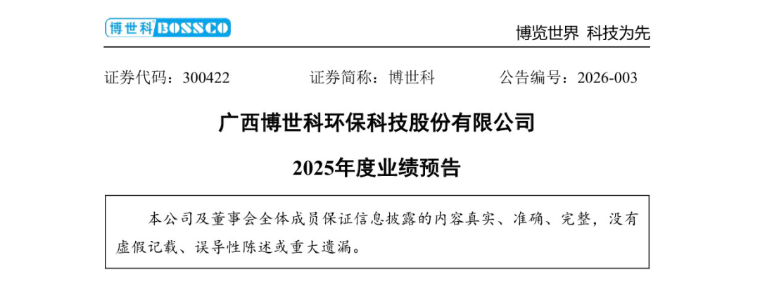 1月30日晚,广西博世科环保科技股份有限公司(下称“博世科”)发布业绩预告,预计2025年归属于上市公司股东的净利润亏损5.65亿元-7.3亿元,相比上年同期大幅减亏。