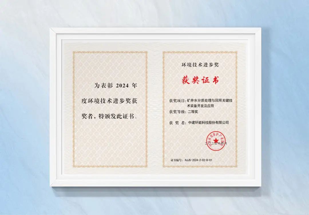由中国环保产业协会主办的第二十三届中国国际环保展览会暨第七届生态环保产业创新发展大会于4月10日-12日在北京中国国际展览中心(朝阳馆)举办,主题为“践行‘两山’理念,服务‘双碳’战略,创新绿色发展,建设美丽中国”。4月10日,第七届生态环保产业创新发展大会暨环境技术进步奖颁奖活动在北京中国国际展览中心隆重召开。本次会议对荣获《2024年度环境技术进步奖》以及入选《2024年生态环境保护实用技术装备和示范工程名录》的获奖企业和项目进行了表彰。中建环能牵头申报的“矿井水分质处理与回用关键技术装备开发及应用”项目成果,凭借其在技术创新和应用实践方面的卓越表现,经过中国环保产业协会的严格审定,最终荣获“2024年度环境技术进步二等奖”。
