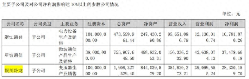 然而,在*ST红相的2023年半年报中,银川变压器(半年报中简称“银川卧龙”或“银川变压器”)作为其资产规模最大的子公司,总资产达19.08亿元,占合并资产负债表总资产41.16亿元的46.36%,净资产8.44亿元占合并报表净资产16.96亿元的49.76%。