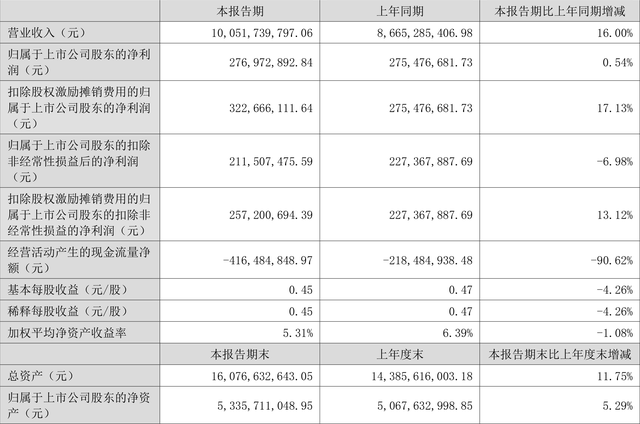 根据半年报,公司第二季度实现营业总收入45.14亿元,同比增长3.14%,环比下降18.48%;归母净利润1.43亿元,同比增长0.33%,环比增长6.30%;扣非净利润1.02亿元,同比下降13.07%,环比下降7.11%。