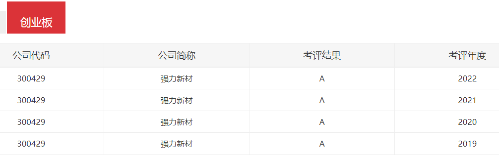 近日,深圳证券交易所公布了创业板上市公司2022-2023年度信息披露考核结果,我公司强力新材(300429)再次获得信息披露考评“A”级,这已是公司连续四年获得A级评定。