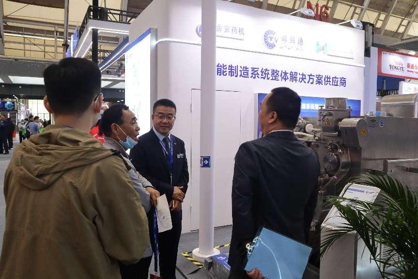 北京诚益通控制工程科技股份有限公司携北京诚益通科技有限公司、北京诚益通博日鸿智能装备技术有限公司、浙江金安制药机械有限公司共同向与会观众展示生物医药智能制造整体解决方案及相关产品设备。此次展会,诚益通参展面积共计558平方米,制剂机械一馆CE-4展位展示了智能制造自动化、信息化整体解决方案,智能连消系统,在线近红外光谱检测设备,智能物流系统,智能粉体装备系统,干法制粒设备及智能包装设备;原料药设备及机械一馆S1-5展位展出自动化中药提取浓缩设备,展台上各种制药设备吸引了大量的国内外客户前来观展,展位前人流涌动,广受关注和好评并受到了许多客户的青睐。