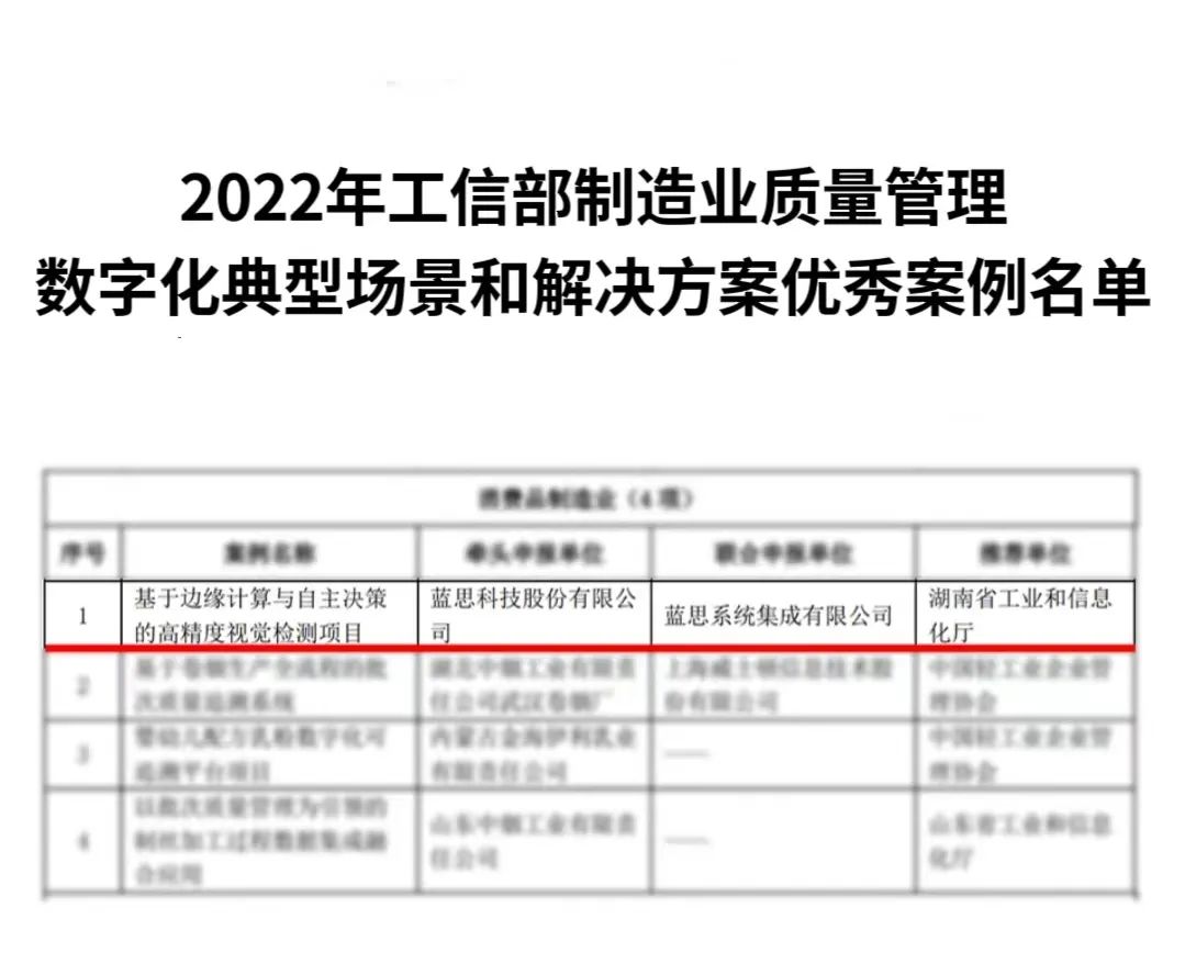 近日,湖南省工信厅发布2022年十大湖南省制造业数字化转型典型应用场景名单,蓝思科技集团申报的“基于边缘计算与自主决策的高精度智能视觉检测”项目荣誉上榜。