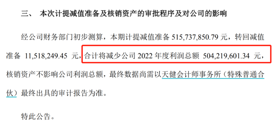 公司在1约30日公告22年全年净利润为24.22-25.26亿元,并且这是在计提减值准备后的情况。