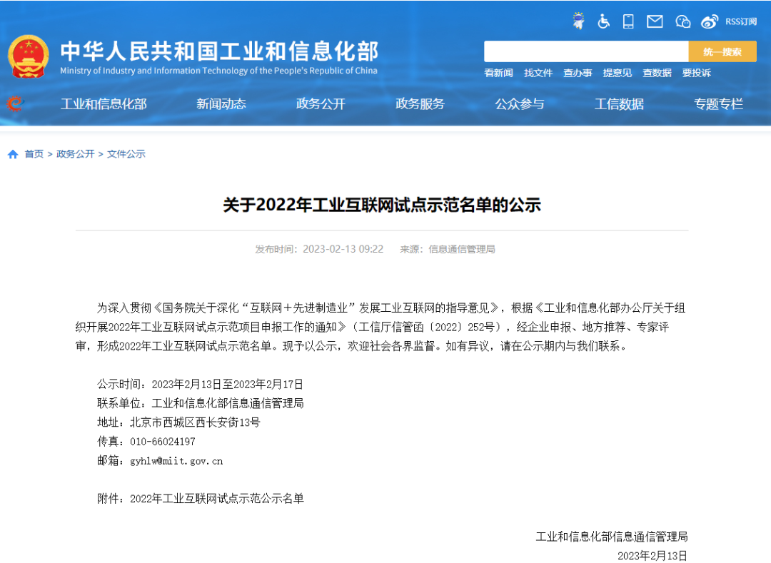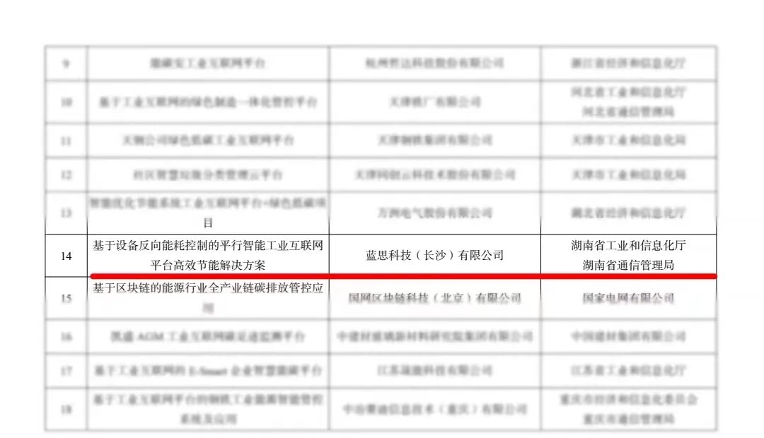 2月13日,国家工信部公布了2022年工业互联网试点示范名单,蓝思科技申报的“基于设备反向能耗控制的平行智能工业互联网平台高效节能解决方案”入选。