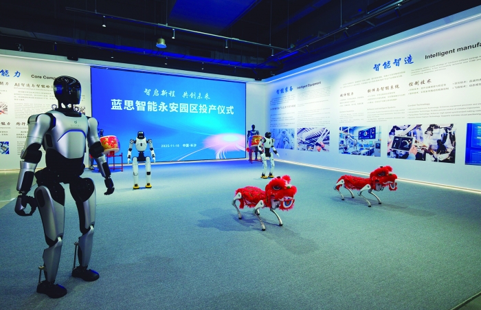 “为了更好地适应人工智能时代的产业发展趋势,我们将蓝思智能机器人和蓝思集成融合,实现了软硬结合。”周群飞介绍,蓝思智能机器人前身是蓝思科技的设备加工部,既承载了生产设备、检测设备、自动化产线、工业机器人的研发制造,也肩负拓展具身智能与AI服务器业务的重任。蓝思集成则是蓝思科技系统软件平台部门,聚焦自动化、数字化赋能。