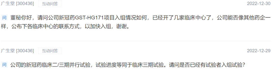 在互动易上,有投资者问泰中定入组情况,公司能否像其他药企一样,公布下各临床中心的联系方式,以加快入组。不过广生堂暂时没有回应。