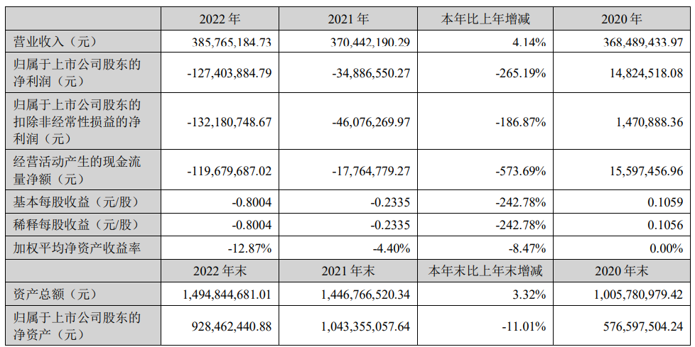 2023年一季度,公司实现营业收入8,823.11万元,同比下降8.59%;归属于上市公司股东的净利润-6,330.84万元,同比下降593.29%;归属于上市公司股东的扣非净利润-6,202.82万元,同比下降435.85%;经营活动产生的现金流量净额-11,851.40万元,同比下降513.17%。