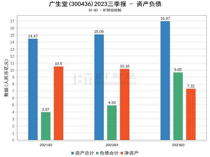 在资产负债方面,广生堂2023年三季度的资产总计为16.97亿元,相比上年度末的14.95亿元有所增长。负债合计为9.65亿元,较上年度末的5.39亿元增加。公司的净资产为7.32亿元,相比上年度末的9.56亿元有所减少。资产负债率为56.84%,较上年度末的36.07%有所增加。