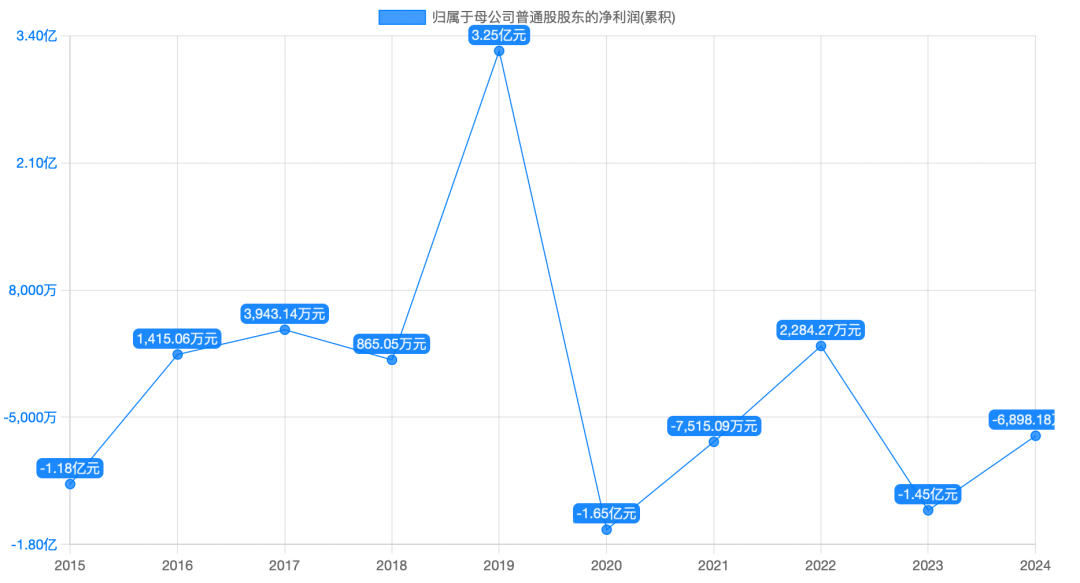 2021年至2024年,公司归母净利润分别为-0.35亿元,-1.27亿元、-3.49亿元、-1.56亿元,累计亏损超6亿元。