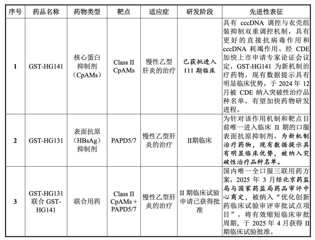 其中,GST-HG141是一种核心蛋白抑制剂(CpAMs),同样适用于慢性乙型肝炎的治疗,而且该药已经在2024年12月被纳入突破性治疗品种名单。