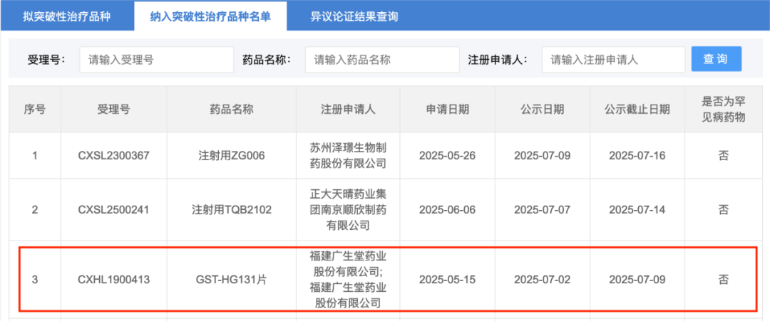 7月10日晚,广生堂正式发布公告宣布:GST-HG131纳入突破性治疗品种名单。