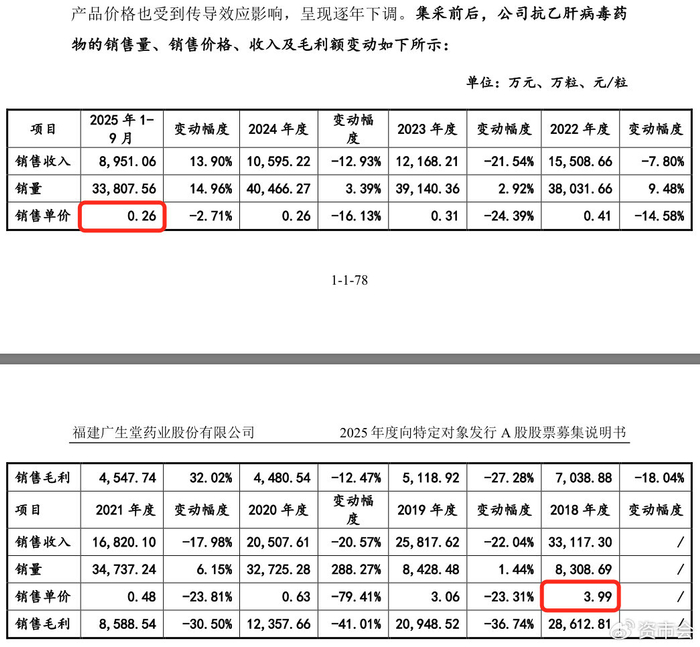 “在2018年没有集采时,公司抗乙肝病毒药品综合单价为3.99元/片(粒),经过多年多轮集采降价后,2024年综合单价降至0.26元/片(粒),降幅达93.48%。”广生堂称。