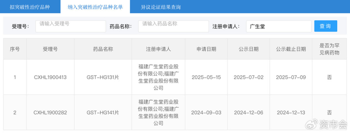 2024年12月和2025年5月,GST-HG141与GST-HG131分别纳入国家突破性治疗品种名单。