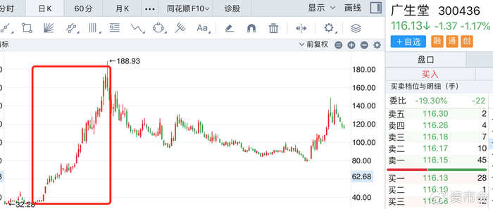 在创新药光环加持下,广生堂收获市场大量关注。盘面显示,2025年7月至8月中旬,公司股价一度从35元飙升至188.93元,累计涨幅超过380%。