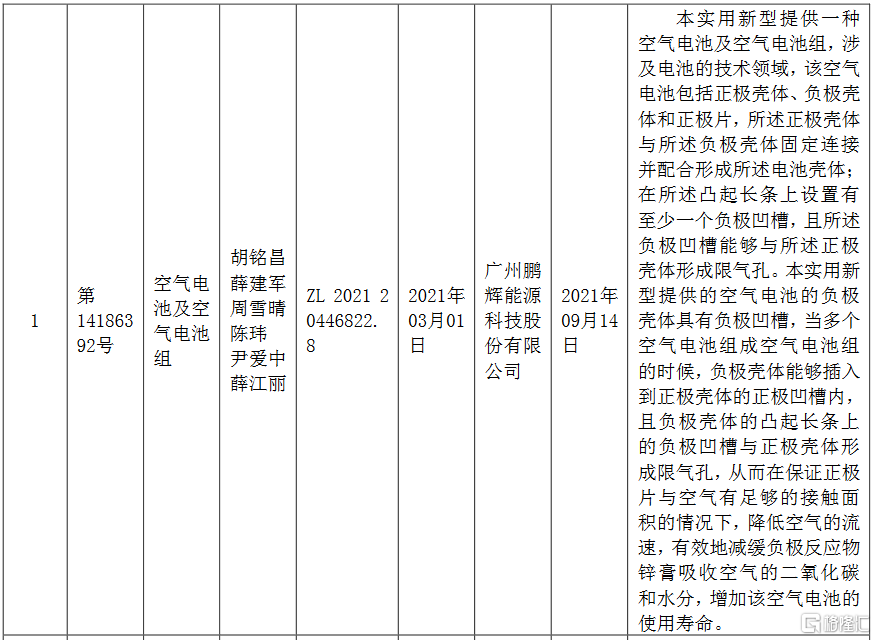 格隆汇9月27日丨鹏辉能源(300438.SZ)公布,公司近日收到国家知识产权局颁发的发明专利证书和实用新型专利证书,具体情况如下: