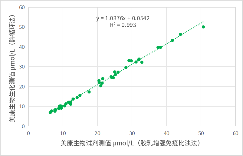 线性范围全面升级3.0-60 μmol/L;支持血清、血浆标本检测;
