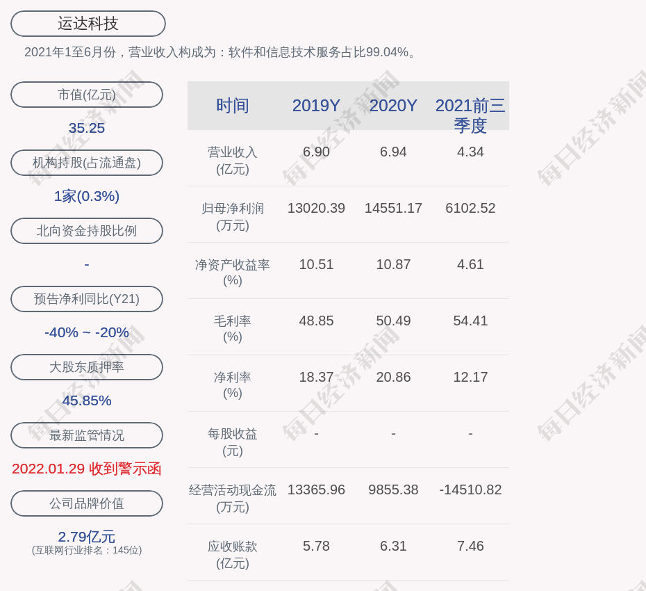 2021年1至6月份,运达科技的营业收入构成为:软件和信息技术服务占比99.04%。