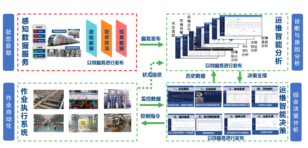 运达智能运维解决方案面对城市轨道交通列车运行的复杂环境,运用物联网、数字孪生、大数据、云计算、人工智能等技术,实现列车及设备的互联互通。将基于场景的车载数据、轨旁检测数据、检修业务数据有效耦合,对城市轨道交通的车辆状态特征和运行机理进行深度挖掘,形成一套具有列车状态感知与跟踪、故障诊断预警、剩余寿命预测、运维智能决策、作业自动化等能力的智慧系统,保障列车安全可靠、提效节能,实现列车运维精准管理。