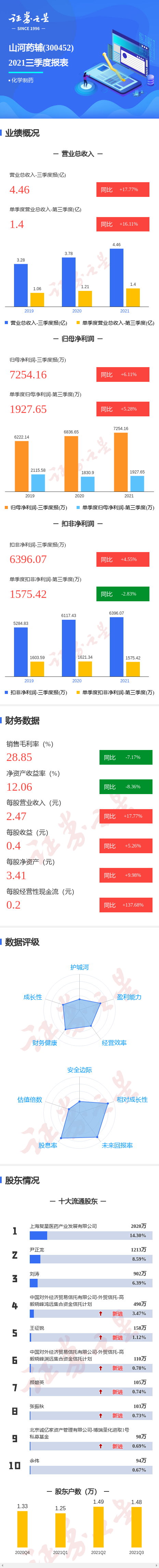 山河药辅2021三季报显示,公司主营收入4.46亿元,同比上升17.77%;归母净利润7254.17万元,同比上升6.11%;扣非净利润6396.07万元,同比上升4.55%;其中2021年第三季度,公司单季度主营收入1.41亿元,同比上升16.11%;单季度归母净利润1927.65万元,同比上升5.28%;单季度扣非净利润1575.43万元,同比下降2.83%;负债率24.34%,投资收益458.54万元,财务费用57.43万元,毛利率28.85%。