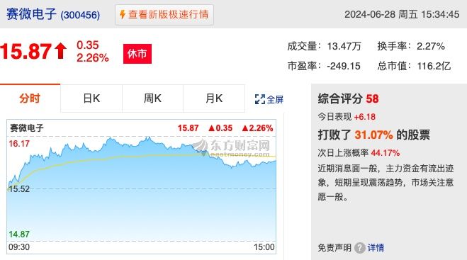 二级市场方面,截至6月28日收盘,赛微电子股价报15.87元/股,总市值116.2亿元。