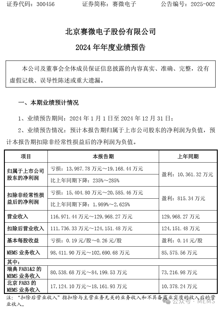 3、赛微电子的北京MEMS产线(FAB 3)的产能爬坡持续推进,除继续开展具有导入属性的工艺开发业务外,从工艺开发阶段转入风险试产、量产阶段的晶圆产品类别持续增加,晶圆制造业务的数倍增长支撑了北京产线的营业收入较上年继续实现大幅增长;但由于在晶圆品类丰富背景下研发投入增加、工厂产能继续扩充建设,工厂运营支出进一步扩大,叠加折旧摊销因素,北京MEMS产线的亏损扩大,抵消了瑞典MEMS产线的盈利增长,导致公司MEMS主业整体亏损。