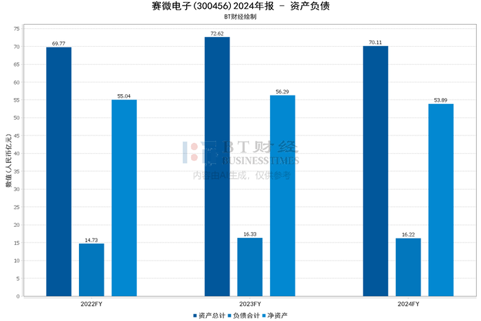 从资产负债数据来看,2024年末资产总额为70.11亿元,同比下降3.45%;归属于上市公司股东的净资产为49.24亿元,同比下降4.62%。资产负债率期末为23.14%,期初为22.49%,略有上升。部分资产和负债项目出现变动,如货币资金下降4.26%是综合因素所致;短期借款下降1.87%主要因报告期短期银行借款减少;合同负债增长0.40%是因报告期MEMS业务规模增长,预收款项增加等。