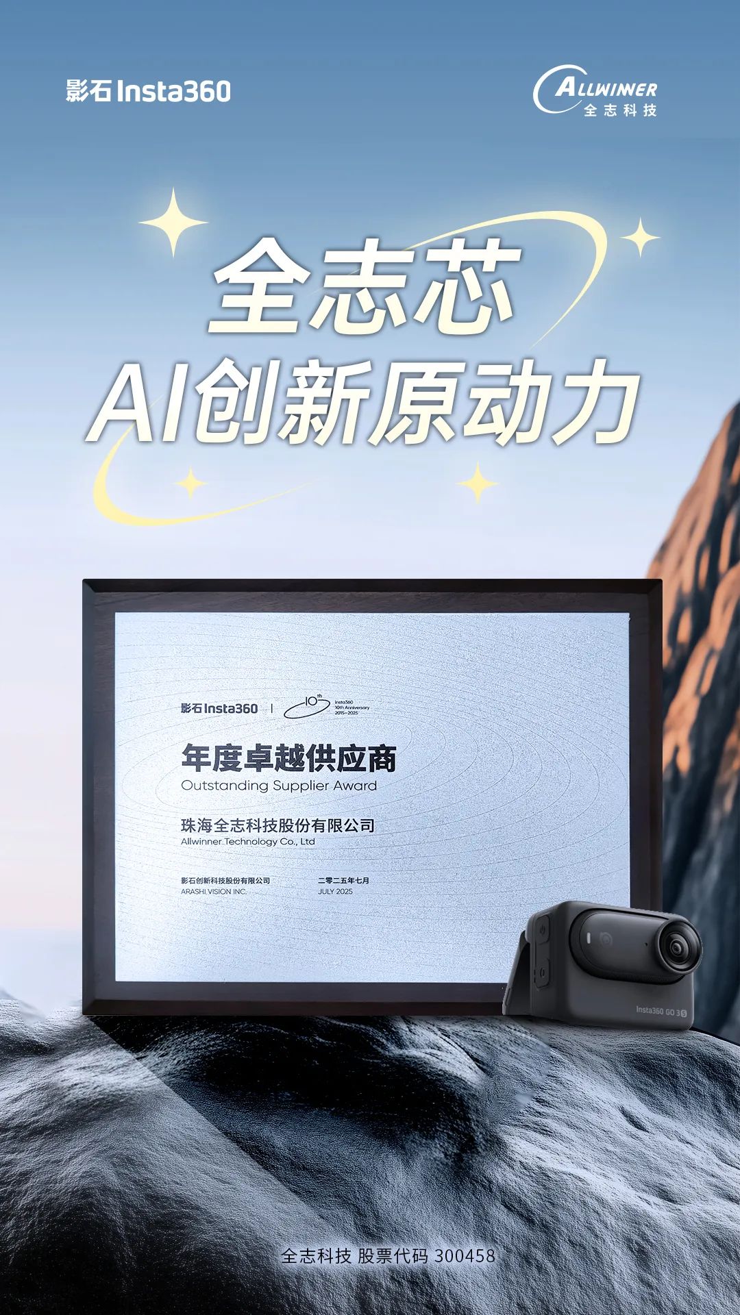 全志科技获影石Insta360 “年度卓越供应商”称号
