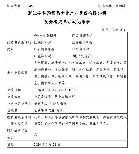 汤姆猫还向投资者介绍了公司2024年计划上线的新产品。除公司国内外团队在研的《Talking Ben AI》(暂定名)、多模态AI汤姆猫、汤姆猫AI讲故事等AI交互产品之外,在游戏业务上,公司储备了《汤姆猫图画册》《金杰猫的游乐场》《汤姆猫闯乐园》《我的汉克狗:海岛》《Sonic Dash:Endless Running》《So nic Dash 2:SonicBoom》等多款新玩法、新模式的产品。其中,新一代虚拟宠物养成类游戏《我的汉克狗:海岛》,融合了半开放世界海岛探索玩法,已于2023年11月在海外开启首次测试发行;定位于低幼年龄玩家的交互式儿童娱乐应用《金杰猫的游乐场》也已在海外开始前期测试工作;与此同时,2023年12月,公司已获取跑酷游戏《索尼克音爆》的产品版号,后续公司将在完成本地化研发工作后推进该产品的上线计划。