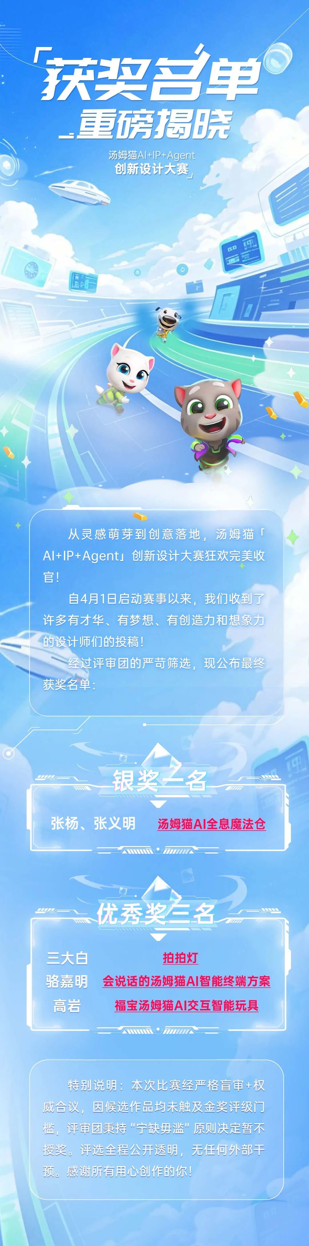 汤姆猫「AI+IP+Agent」创新设计大赛获奖名单重磅揭晓!