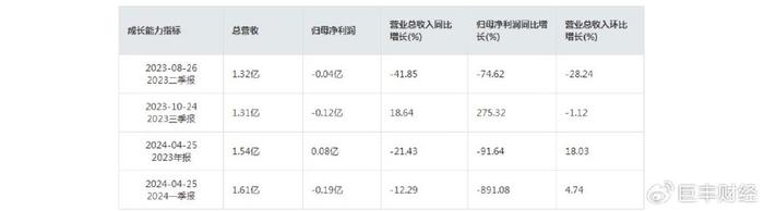2024年一季报显示,华铭智能总营收为1.61亿,归母净利润为-0.19亿元,营收总收入同比增长-12.29%,归属净利润同比增长-891.08%。