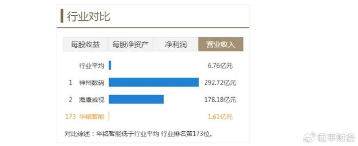 从营业收入方面来看,华铭智能低于行业平均,行业排名第172位。