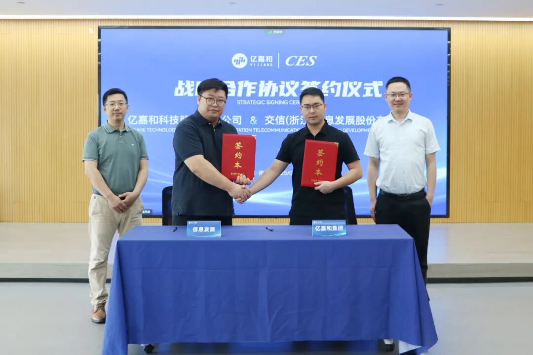亿嘉和科技股份有限公司副总经理兼董事会秘书张晋博,交信(浙江)信息发展股份有限公司首席战略官刘晓乐作为双方代表完成签约。