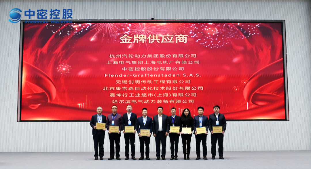 在大会表彰环节, 中密控股 凭借稳定的产品交付、可靠的产品质量以及高效的服务保障,荣获“金牌供应商”称号。这体现了沈鼓集团对 中密控股 在技术研发、产品质量及服务能力方面的高度认可。