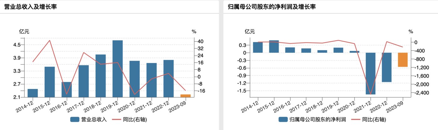 分季度来看,去年一季度至三季度,公司分别实现归母净利润37.73万元、-2190.21万元和-3402.28万元,二、三季度分别同比下滑250.89%、471.79%,呈加速下降趋势,眼看公司的颓势已经难以扭转。