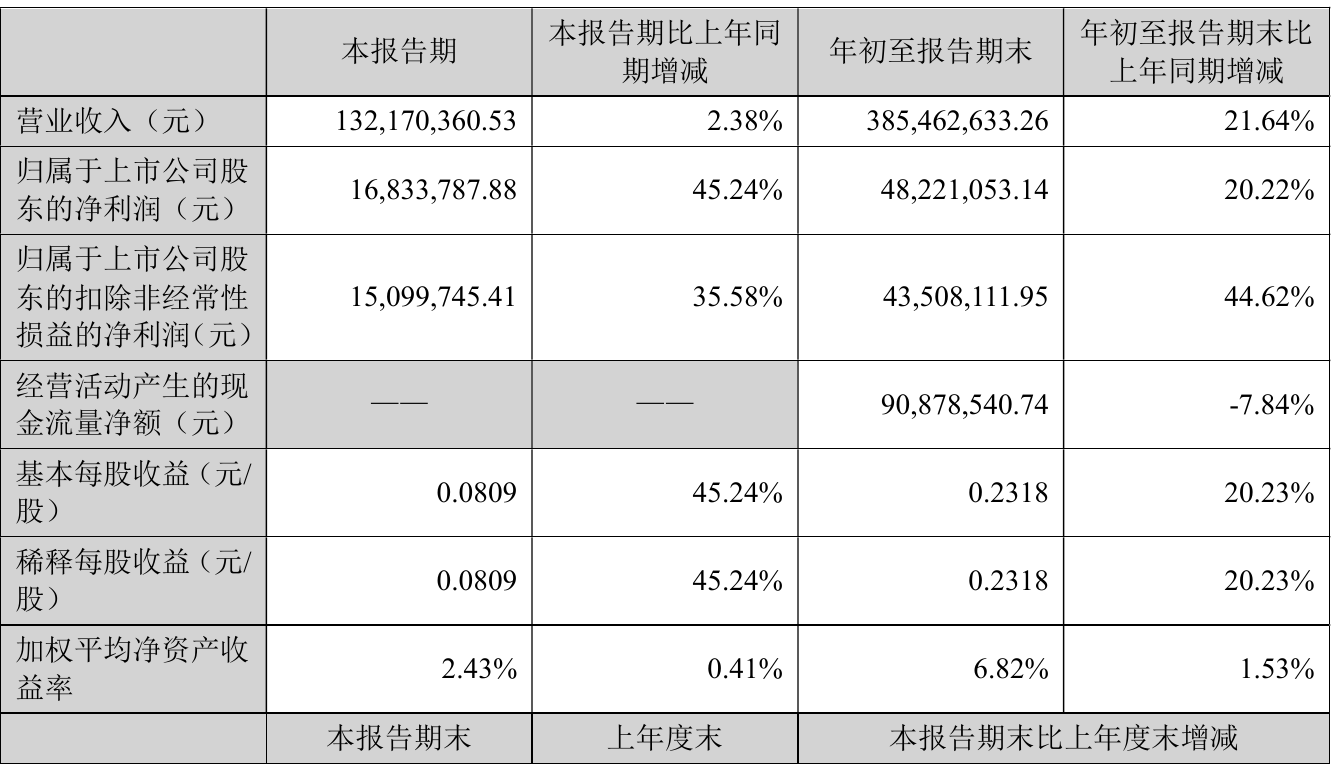 挖贝网10月26日,蓝海华腾(300484)近日发布2021年前三季度报告,报告期内营业收入385,462,633.26元,同比增加21.64%;净利48,221,053.14元,同比净利增加20.22%。