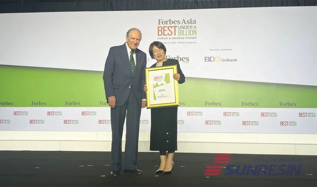 福布斯传媒副总裁Christopher Forbes为蓝晓科技颁奖并表示祝贺:“Sunresin作为高科技领域制造业企业,在通胀、全球经济环境等不确定的环境下,业绩表现出色,是亚洲地区少有的优秀公司。”