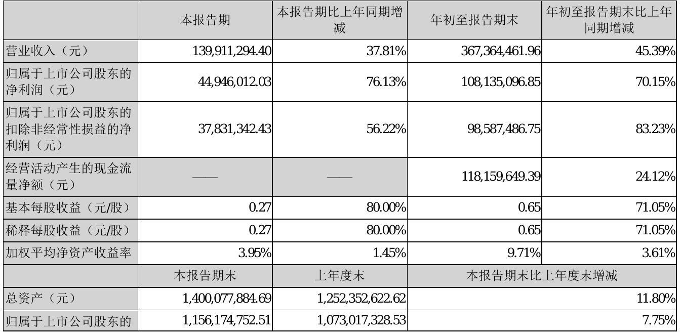 挖贝网10月27日,恒锋工具(300488)近日发布2021年前三季度报告,报告期内营业收入367,364,461.96元,同比增加45.39%;净利108,135,096.85元,同比净利增加70.15%。
