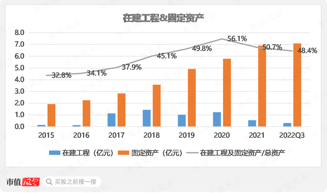 整体的经营杠杆也相对较高,2021年在建工程及固定资产占总资产比重为50.7%。