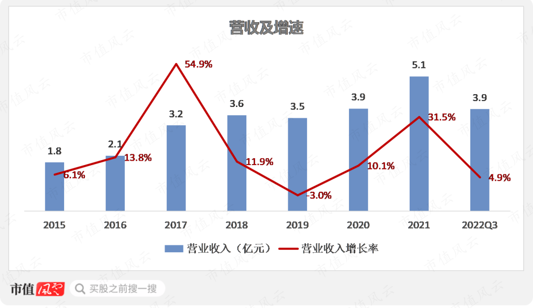 公司2021年营收5.1亿元。其中,精密复杂刃量具一直都是营收的大头,2021年占比为67%;精磨改制作为服务类业务,营收占比为15%。