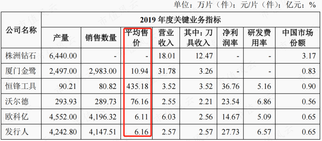 如果看精密复杂刃量具产品,其产品单价更高,下述报告期平均销售单价为2430.96元/件。