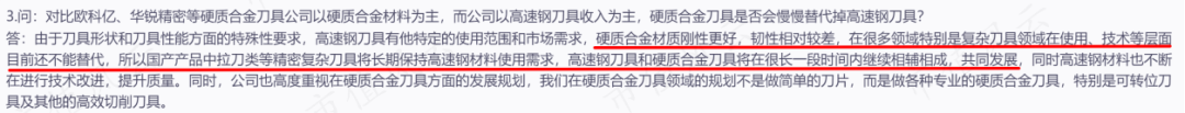 现阶段高端高速钢仍需进口,2021年公司原材料进口占比约30%,进口部分主要是高速钢,硬质合金以国内采购为主。