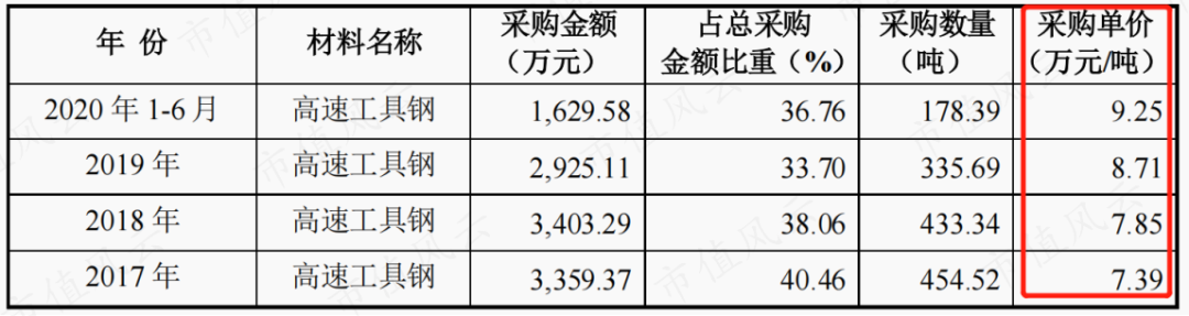 可以看到,2017年至2020年高速工具钢的采购价格上涨明显。