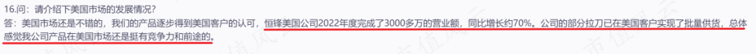 2022年上半年净利润已接近2021全年,机构调研数据显示,2022年度恒锋美国营收同比增长约70%。