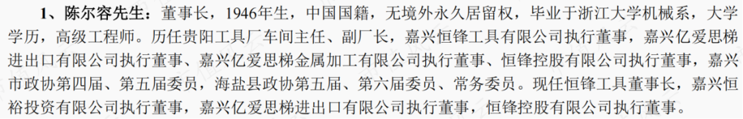 公司创始人、董事长陈尔容毕业于浙江大学机械系,在当时属于高学历人才,参加工作至今基本都专注在刀量具领域。