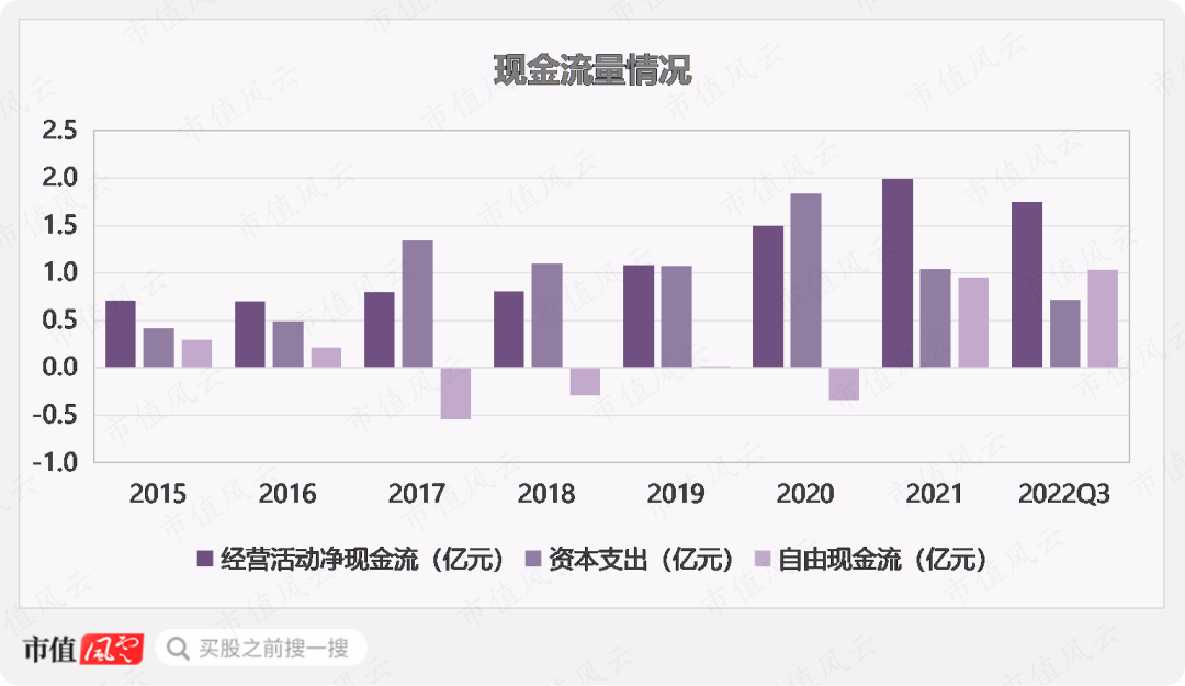 而新产品开发需要配套对应的设备,导致资本支出相对较高。虽然经营活动现金流常年为正,但赚的钱得持续再投入,所以历史上多个年份自由现金流表现不佳。