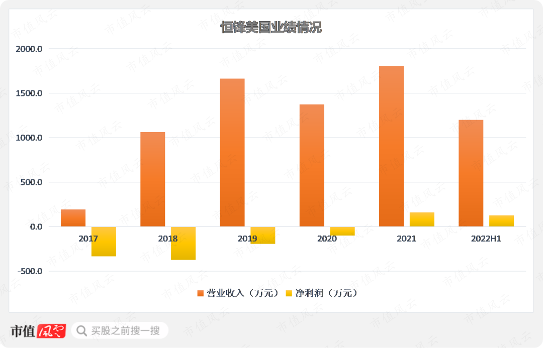 2016年至2020年,恒锋美国连续五年出现亏损,2021年营收为1808万元,净利润为159万元,首次实现盈利。
