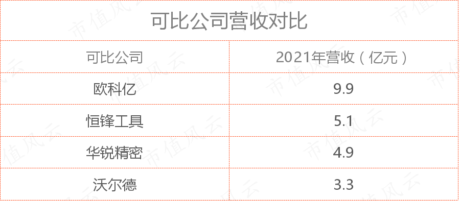 对比主要上市公司营收规模,2021年恒锋工具营收仅次于欧科亿(688308.SH)。